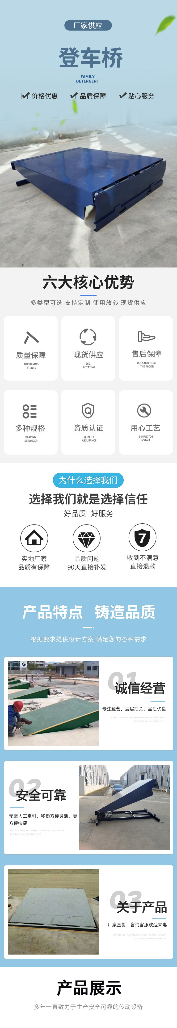 1、固定式登車橋電動(dòng)液壓高度可任意調(diào)節(jié) ,提高裝卸效率的液壓固定式登車橋,采用全液壓驅(qū)動(dòng),操作方便運(yùn)行可靠。